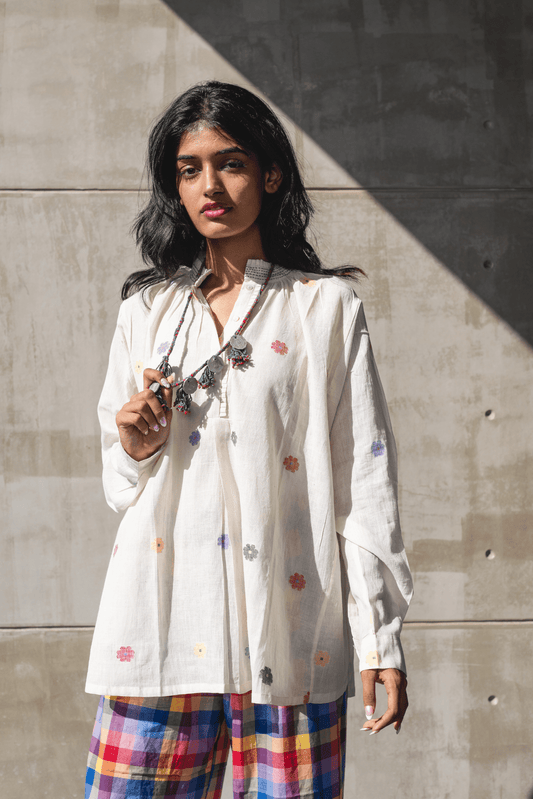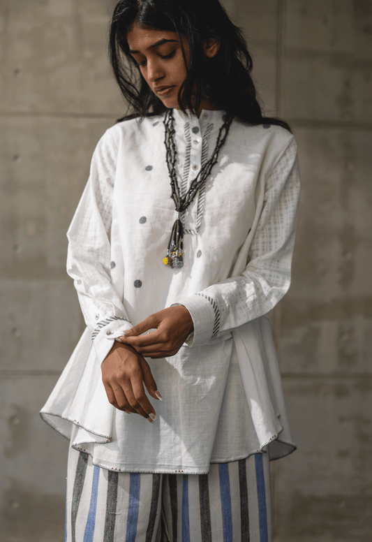 Taking pages out of the same books and sewing them together we got our latest collection- Ludic. The nonchalant hues of nature and the abandoned deliberation of a child is what we have captured in the scatter of knots, patches and clusters made of thread and fabric. Each garment is a tasteful morsel of your inner child.